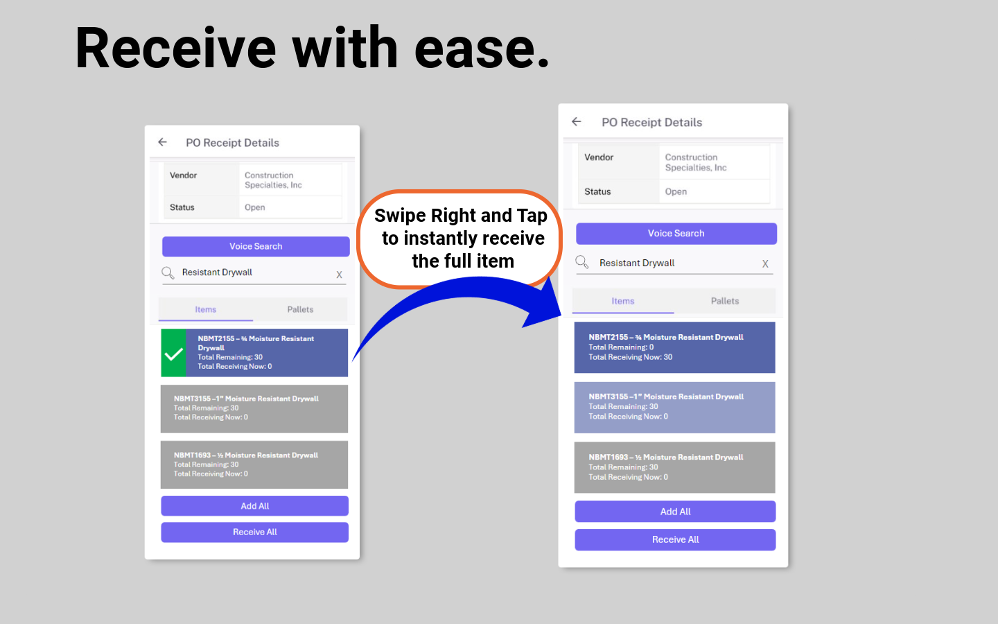 Easily Create and Receive Items to Purchase and Work Orders