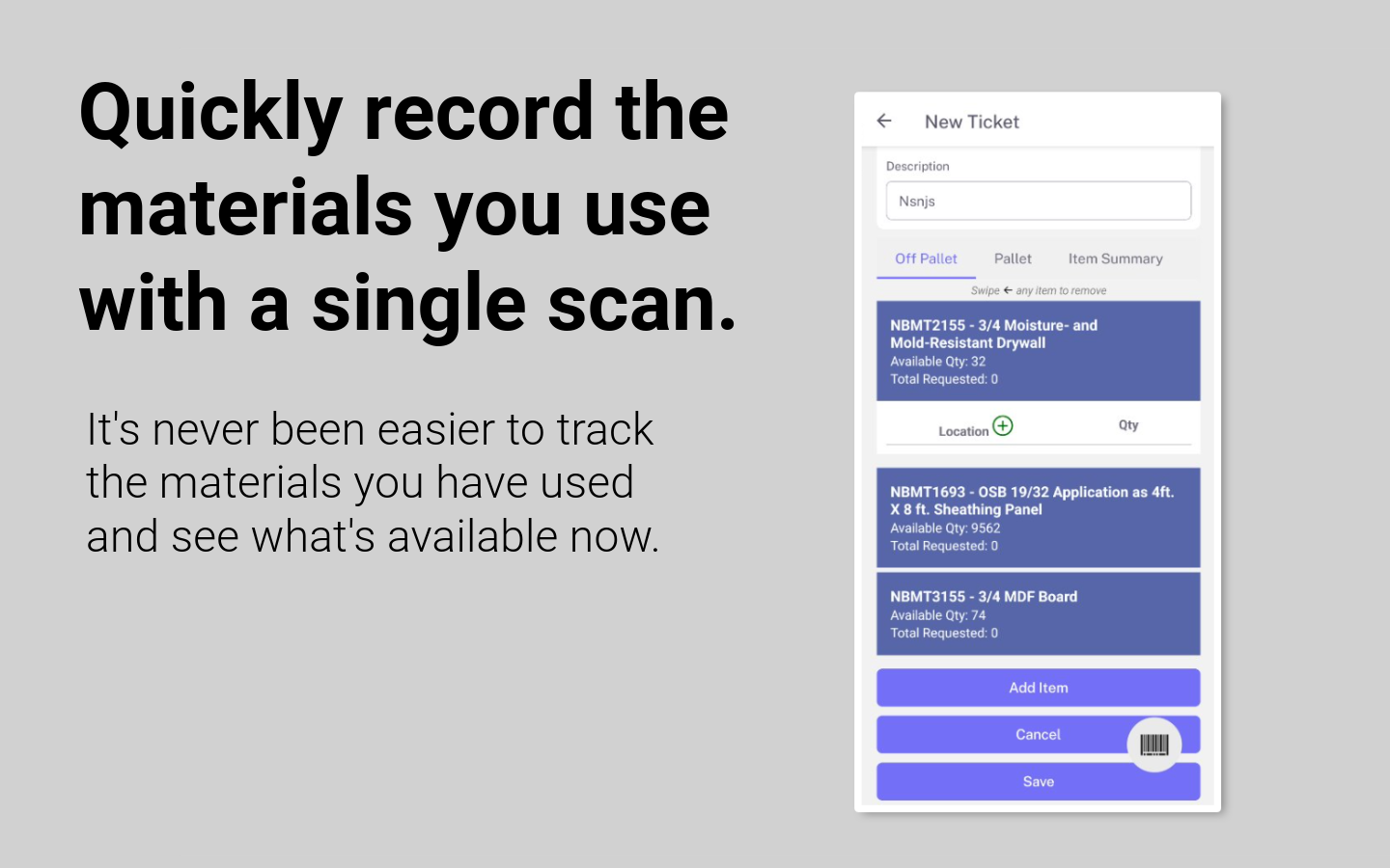 Imagine scanning a barcode on a box of nails to automatically deduct it from inventory and assign the cost to the specific project. This can be especially useful for high-volume items like screws, lumber, or concrete.